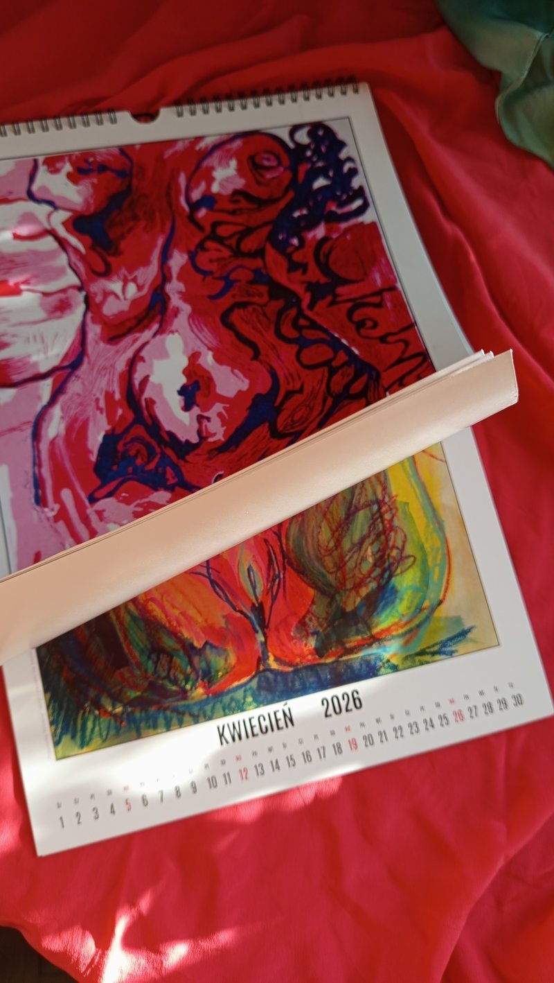 To już czwarta edycja! Na rok 2026 postanowiłam przygotować kalendarz wypełniony ilustracjami moich prac nasączonych pyszną erotyką, cielesnością a przede wszystkim intensywnymi barwami.